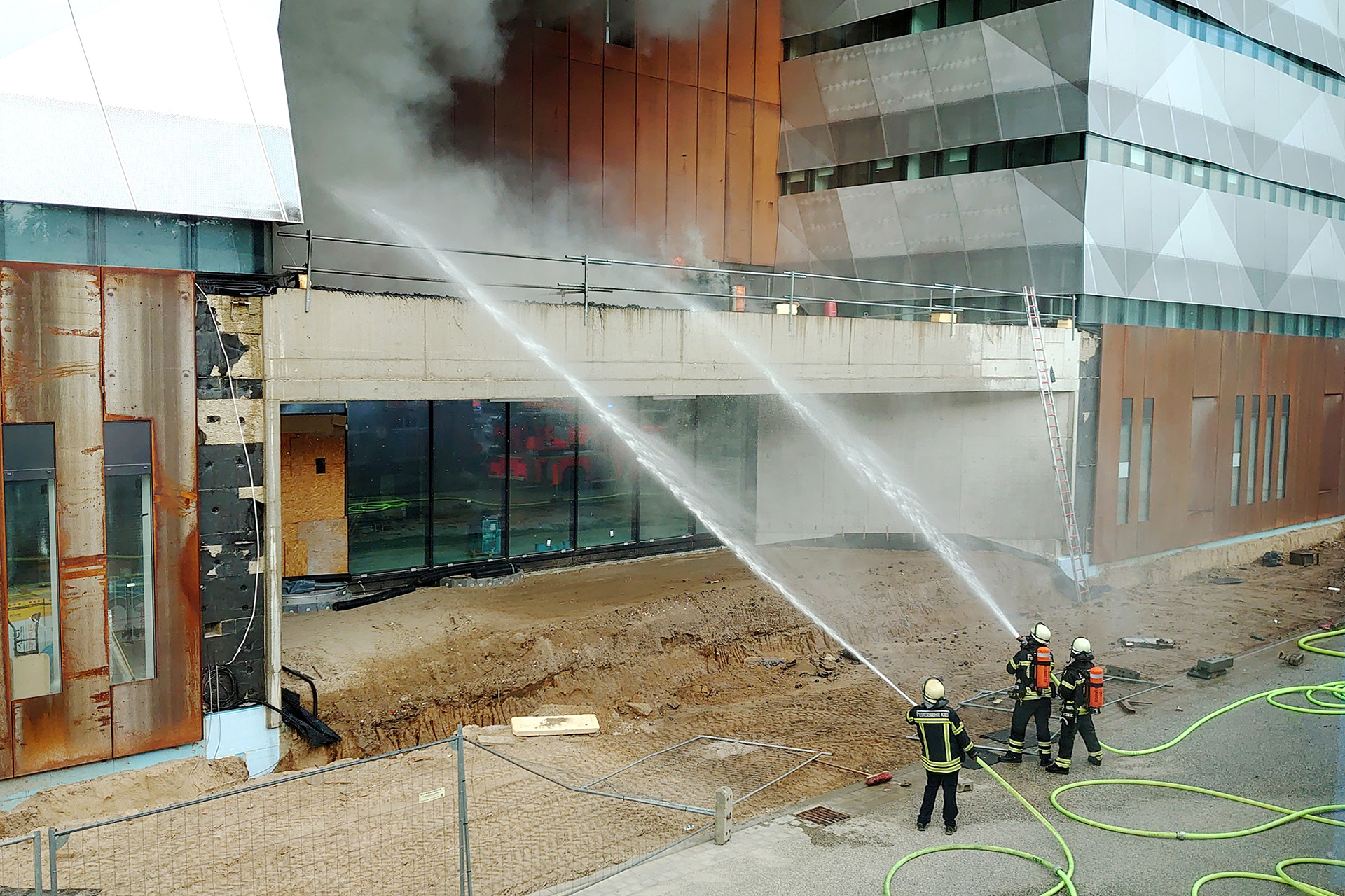 13.09.2022: Bei Arbeiten auf dem Dach des ENB kam es zu einem Brand, dabei wurde ein Handwerker leicht verletzt. Die Feuerwehr konnte das Feuer rasch unter Kontrolle bringen.