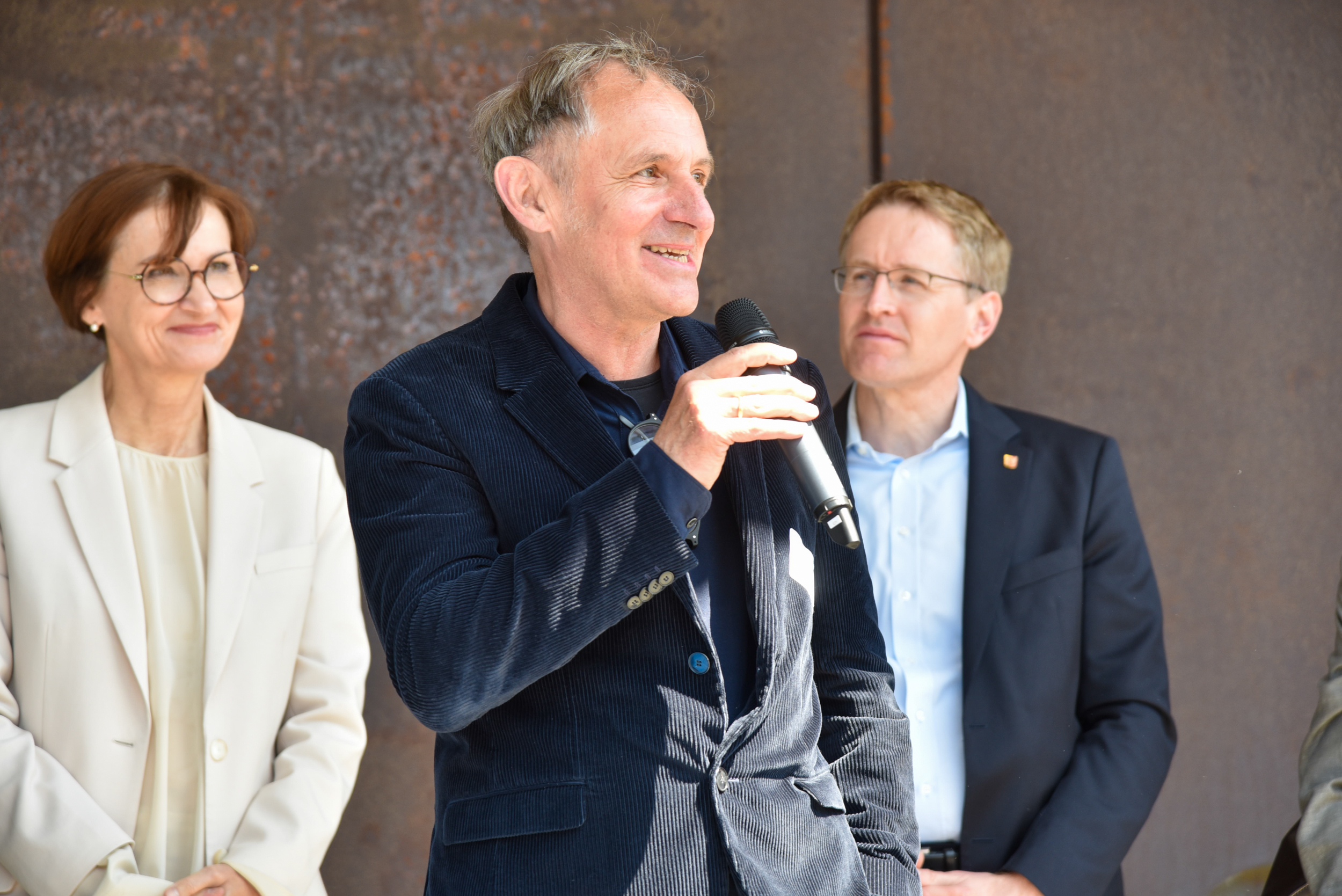 Volker Staab von der Staab Architekten GmbH sprach während der Einweihungszeremonie ein kurzes Grußwort. Foto: Thomas Eisenkrätzer, GEOMAR